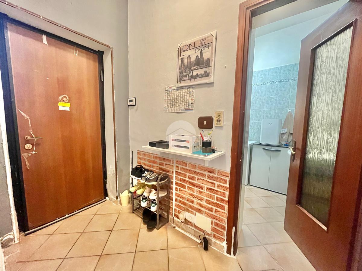 L'alloggio si apre su un disimpegno che conduce ai vari ambienti: bagno finestrato con box doccia, ampio soggiorno, cucina, camera da letto matrimoniale e una cameretta. Gli spazi risultano ben distribuiti e funzionali, ideali sia per coppie che per famiglie.