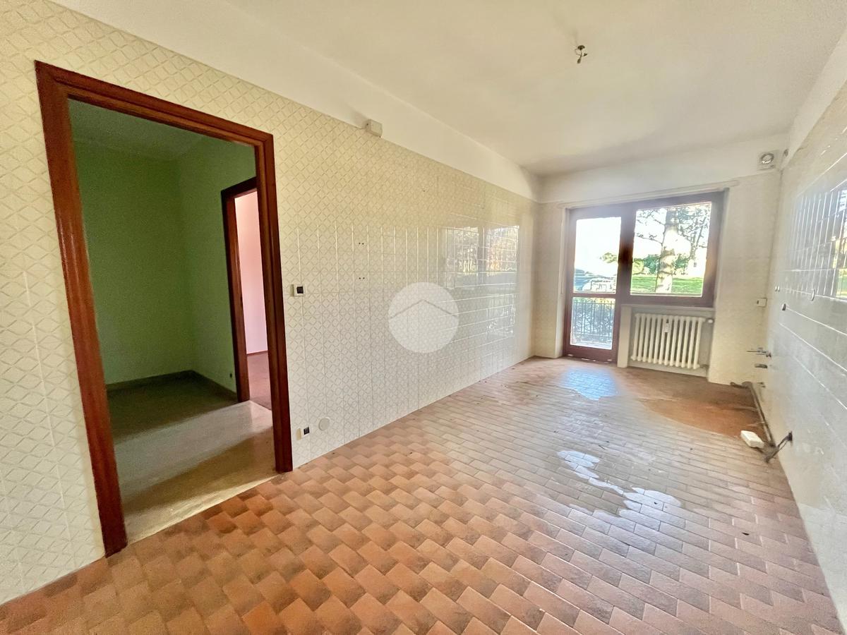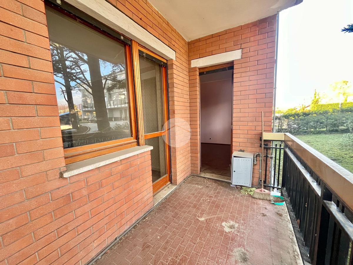In posizione centralissima, appartamento sito al piano primo in condominio ben curato. L'alloggio si presenta con un ingresso in disimpegno, cucina abitabile con accesso al balcone privato che affaccia su una zona ricca di verde, ampia camera da letto di oltre 30 mq con parquet e servizio. Al piano interrato troviamo la cantina privata mentre al piano terreno è presente il garage singolo.