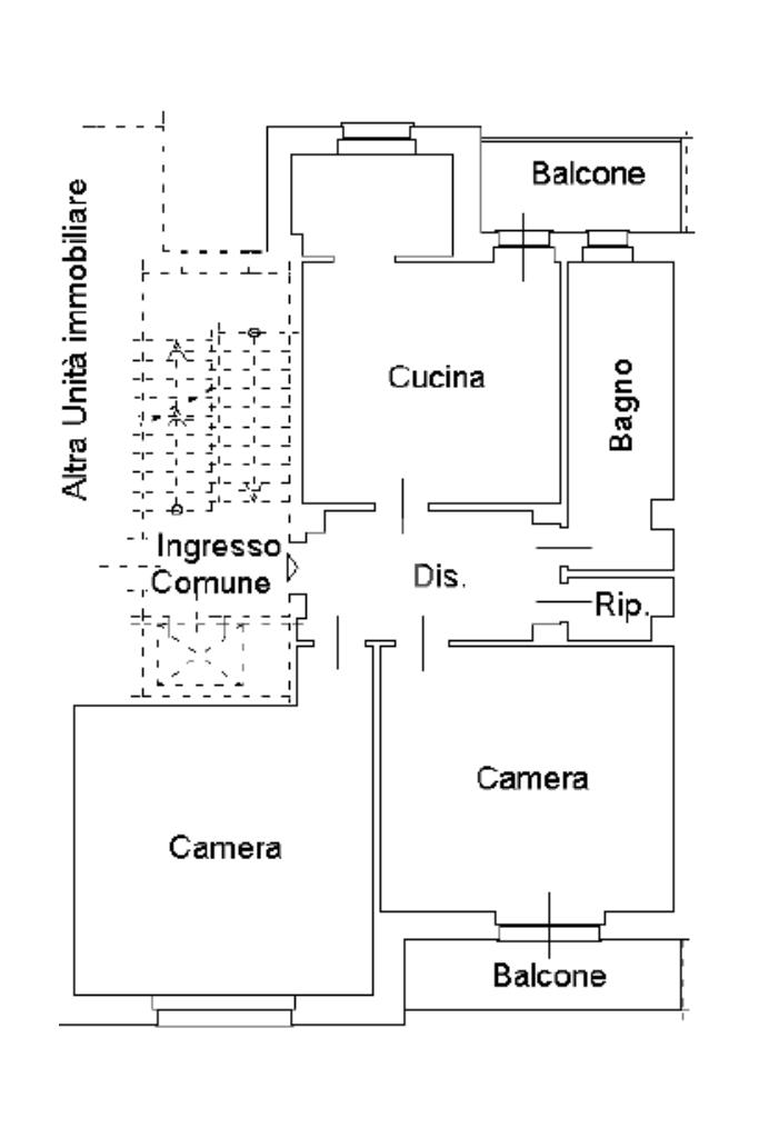L'ingresso si apre su un ampio corridoio che conduce al salone in cui è presente il primo bagno con doccia ed il balcone con vista aperta sul Castello di Avigliana. Gli spazi abitativi comprendono anche una camera matrimoniale e la cucina abitabile con accesso al secondo balcone A completare la funzionalità dell'appartamento un ripostiglio utilizzabile come lavanderia ed un bagno finestrato in cui è stata studiata un ampia doccia.