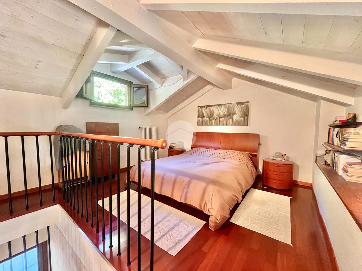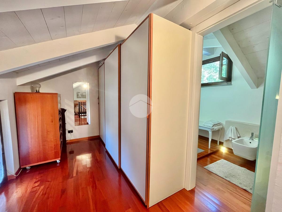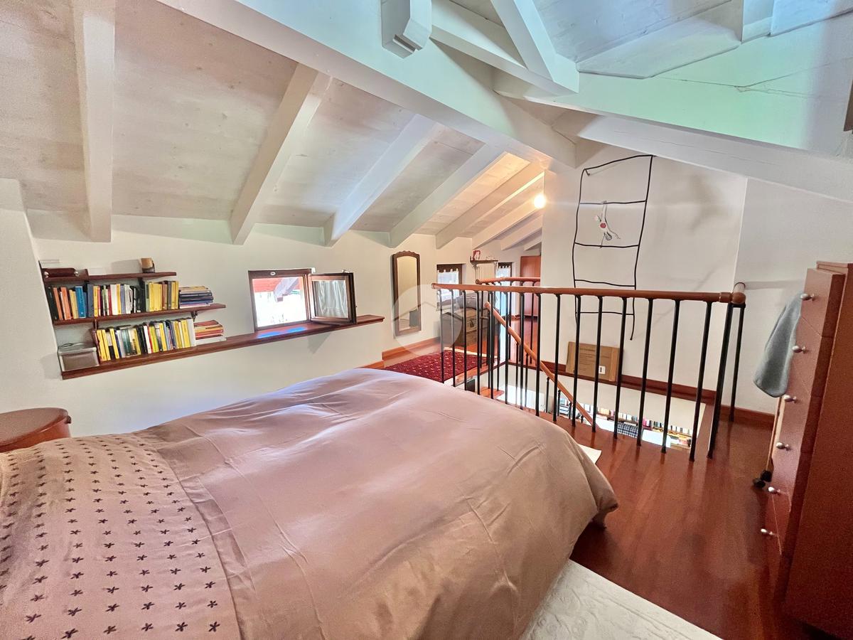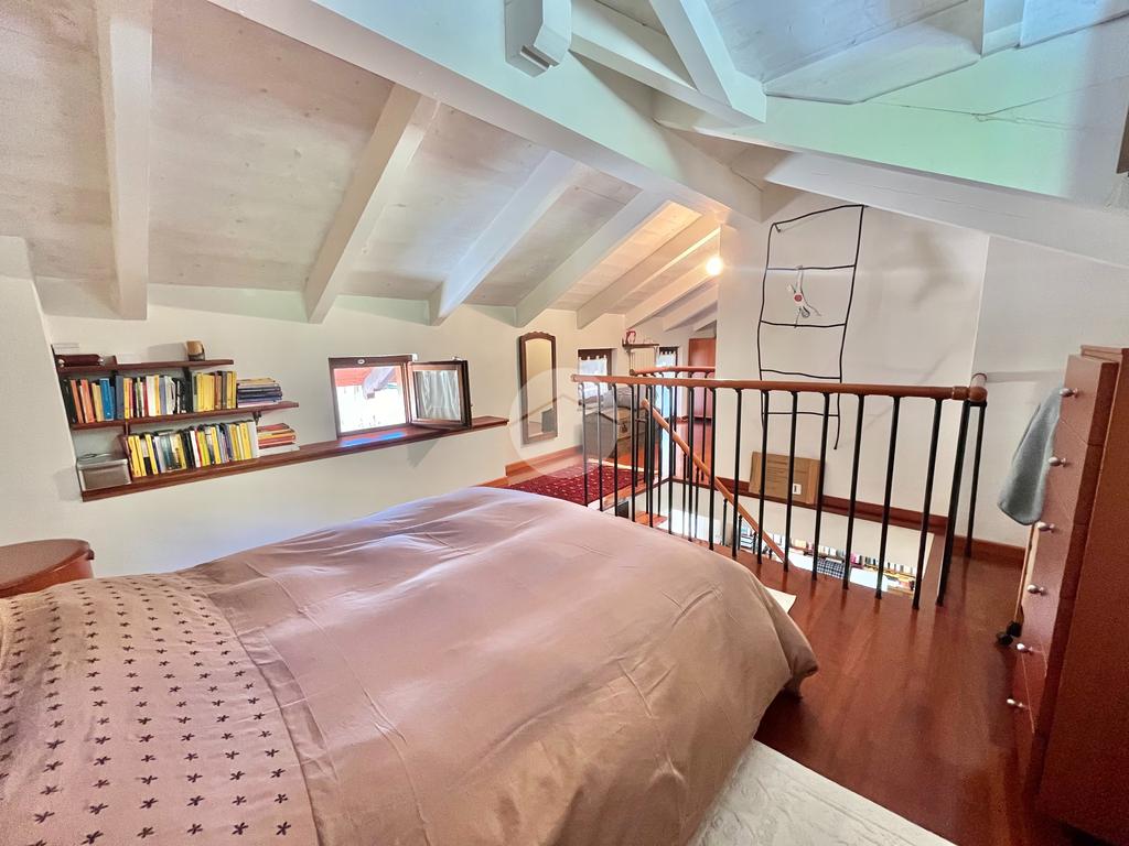Il piano mansardato ospita una seconda camera matrimoniale, una cabina armadio e un bagno finemente ristrutturati e pavimentati in parquet.