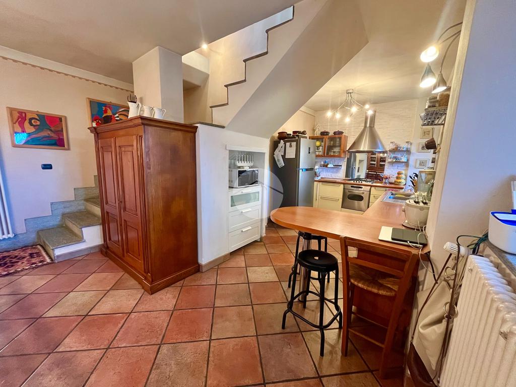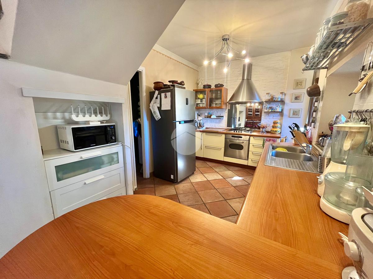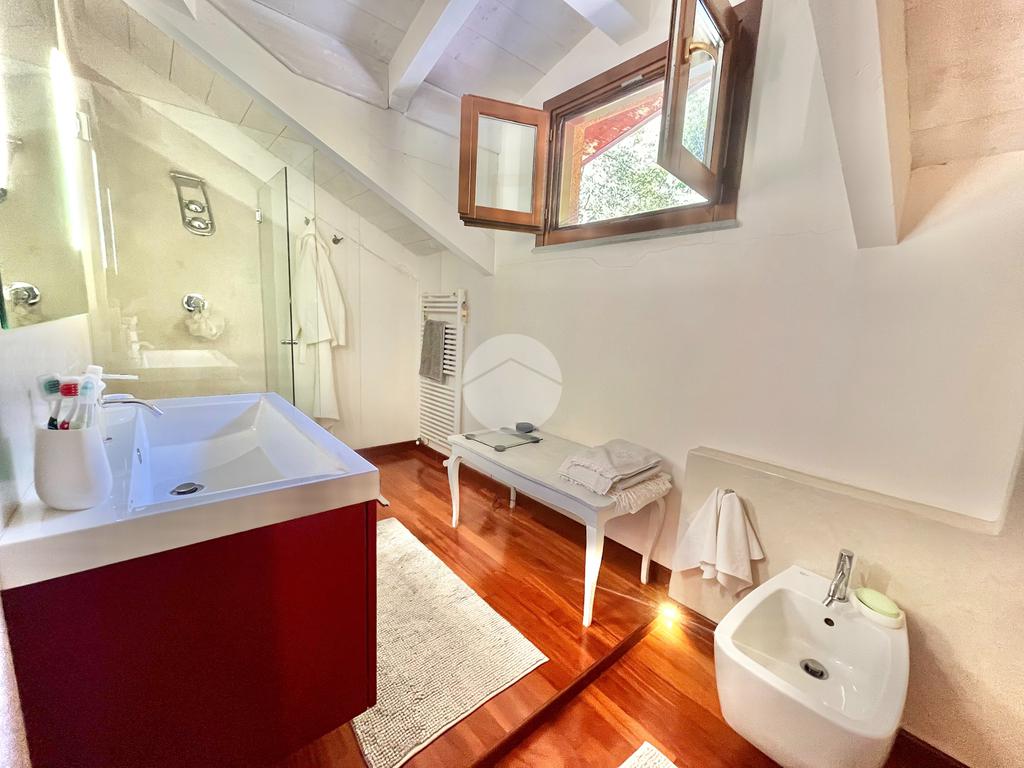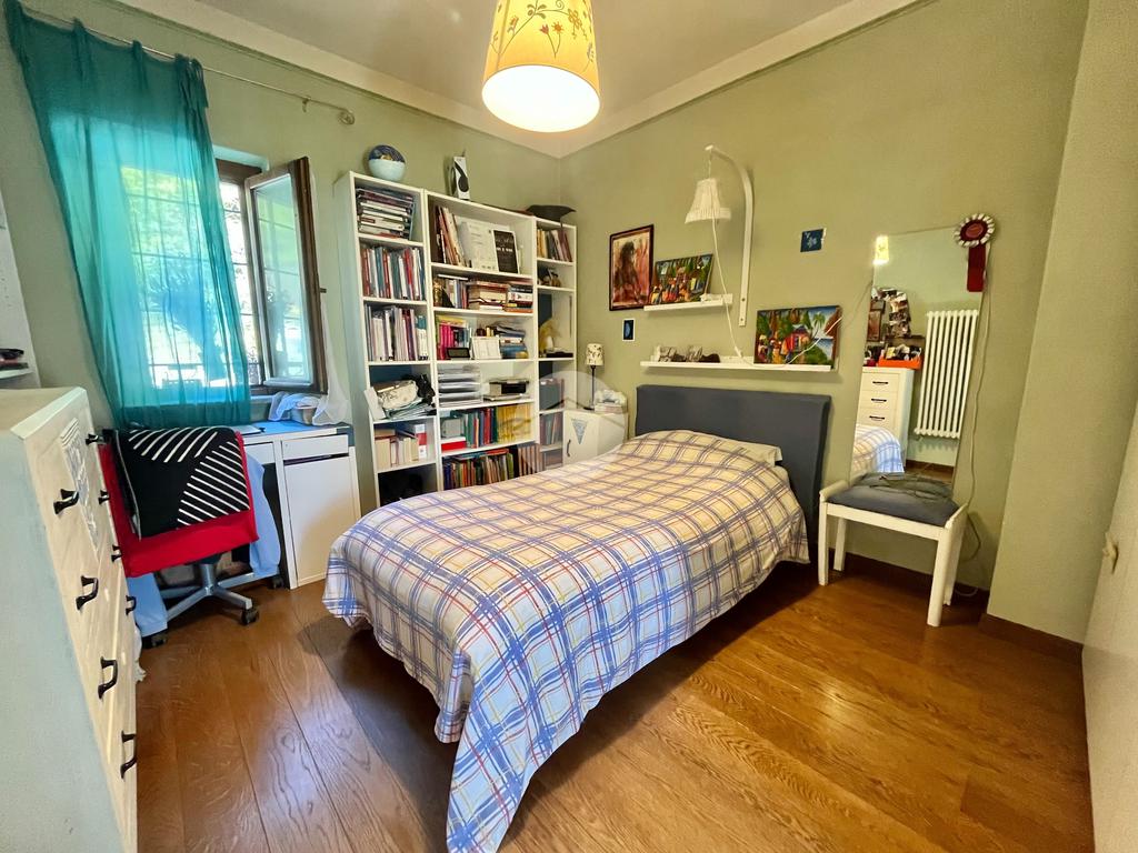 Il piano mansardato ospita una seconda camera matrimoniale, una cabina armadio e un bagno finemente ristrutturati e pavimentati in parquet.