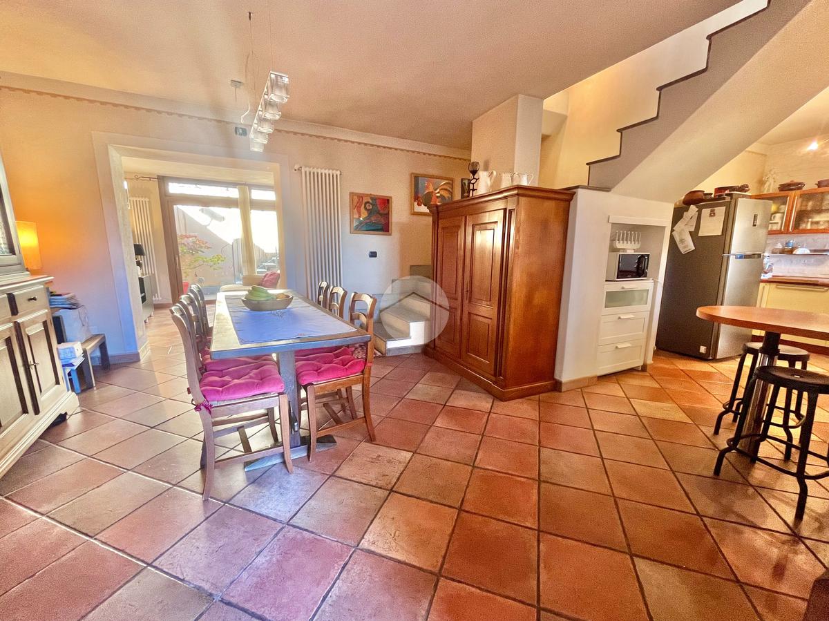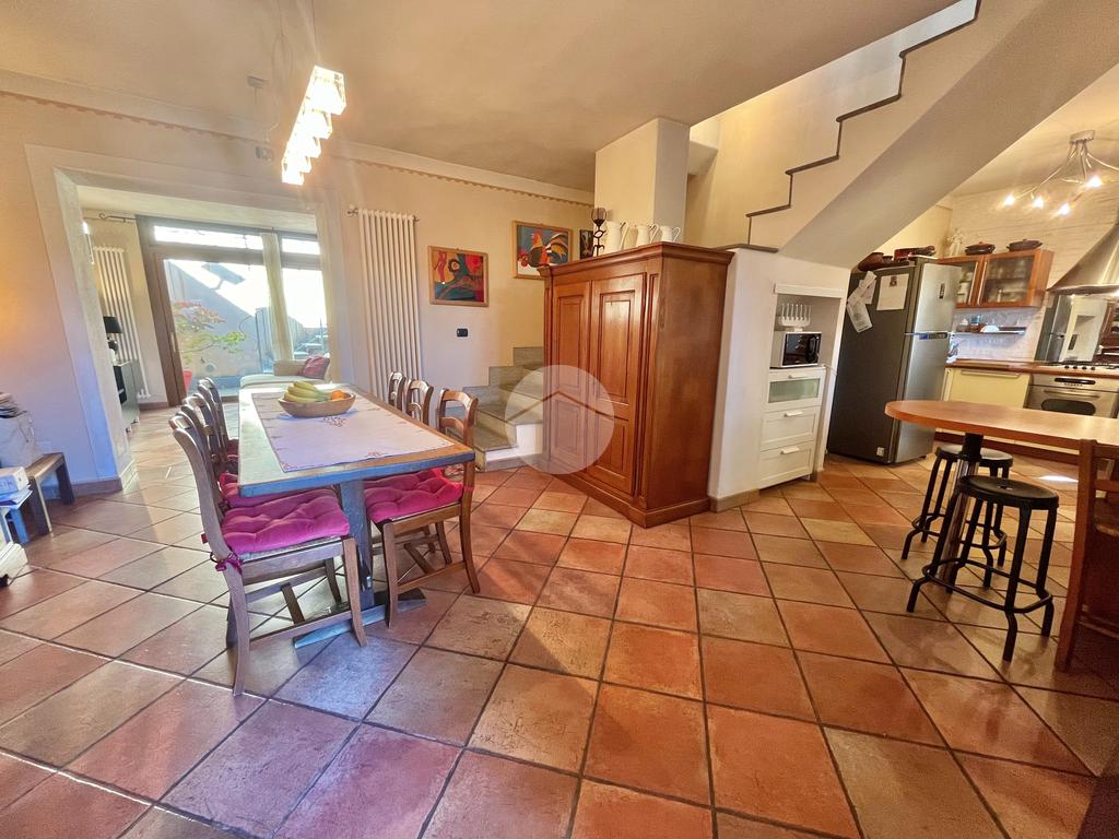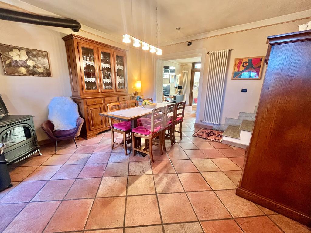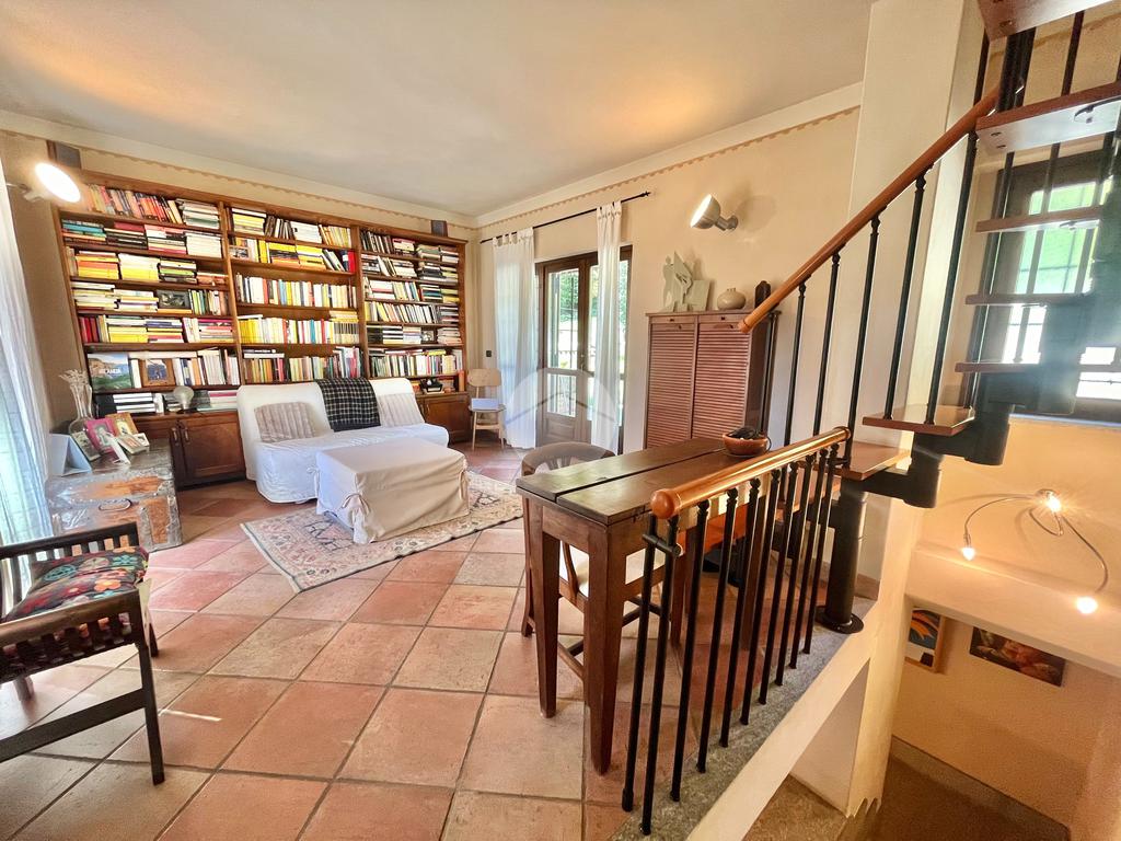 Al piano terreno, l'ingresso accogliente vi conduce alla sala da pranzo, alla cucina arricchita di una dispensa e al soggiorno caratterizzato da vetrate scorrevoli, tutti elegantemente collegati al giardino privato frontale e al terrazzo. Il piano è completato da un ampio servizio con doccia su misura in muratura, illuminato da un suggestivo vetro a soffitto, e dalla lavanderia.