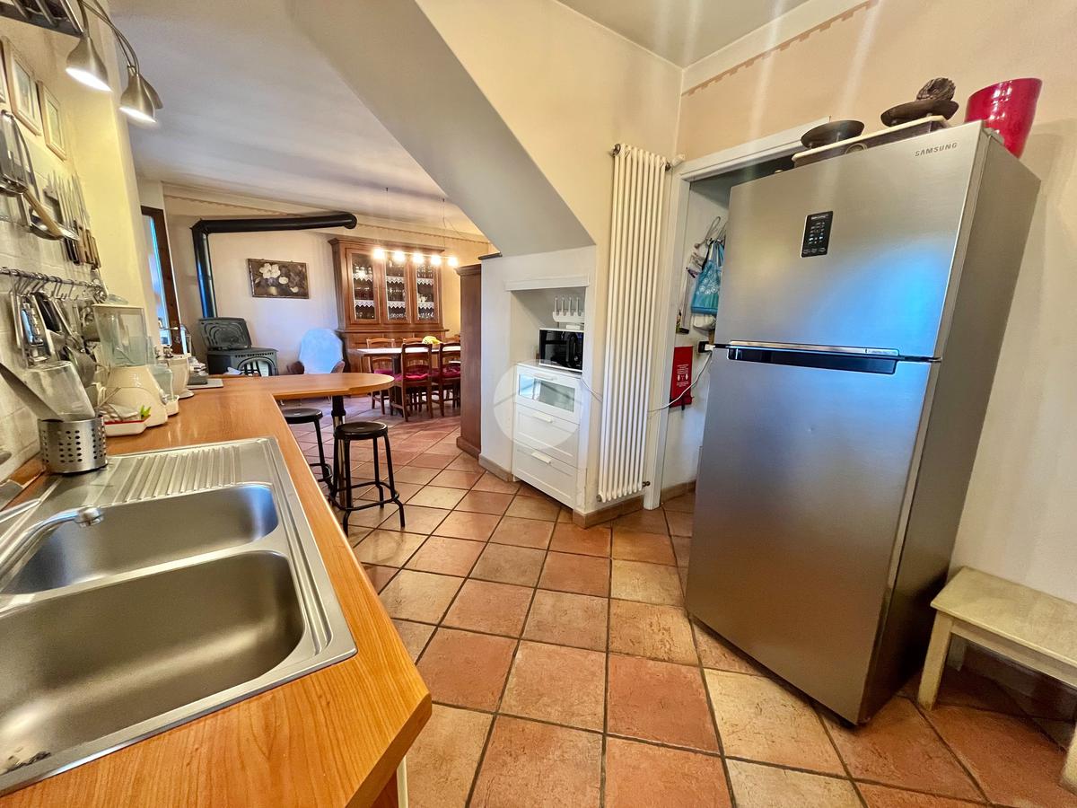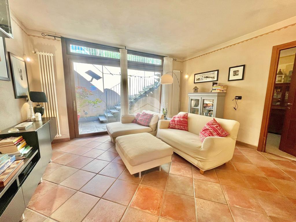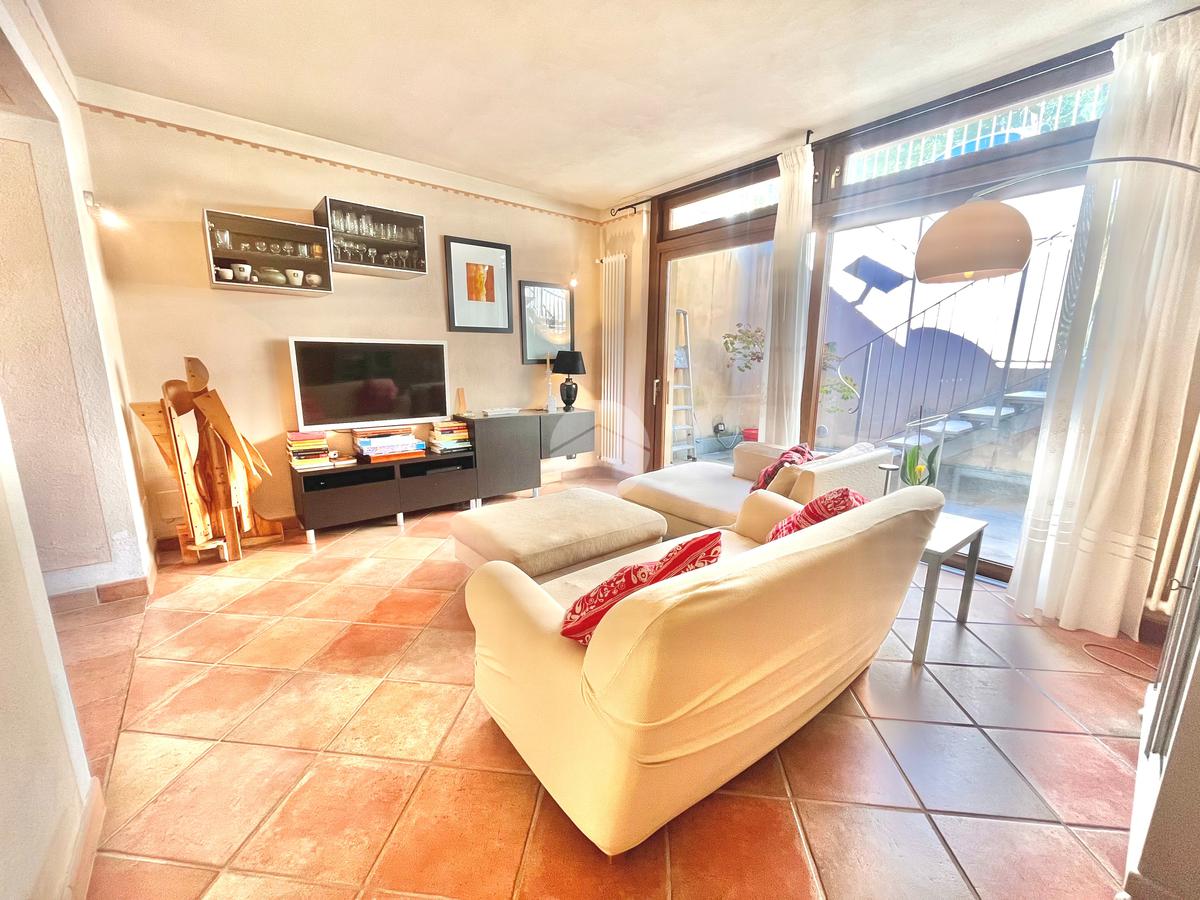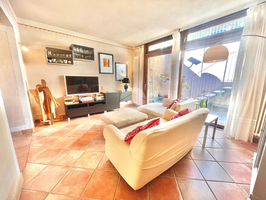 Al piano terreno, l'ingresso accogliente vi conduce alla sala da pranzo, alla cucina arricchita di una dispensa e al soggiorno caratterizzato da vetrate scorrevoli, tutti elegantemente collegati al giardino privato frontale e al terrazzo. Il piano è completato da un ampio servizio con doccia su misura in muratura, illuminato da un suggestivo vetro a soffitto, e dalla lavanderia.